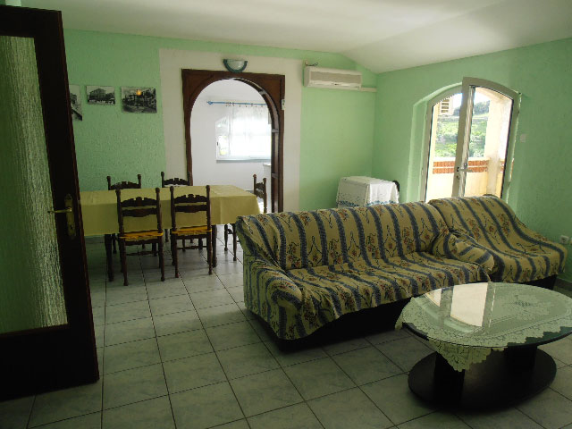Apartman je smješten na drugom katu obiteljske kuće sa pripadajućim parkirnim mjestom. Apartman sadrži 4 spavaće sobe za 8 osoba i sofe kao pomoćni ležaji. Sve sobe imaju privatnu kuaponicu sa tuš kabinama a postoji i glavna kuapona koja ima kadu. Potpuno opremljena kuhinja sa perilicom posuđa, prostrana blagavaonica sa dnevnim boravkom idealne su za boravak velike obitelji ili grupe prijatelja. Apartman je klimatiziran, a sadrži još i besplatan pristup internetu, satelitsku tv te vanjski roštilj. Na prostranoj terasi sa sjedećom garniturom uživajte u pogledu na more.